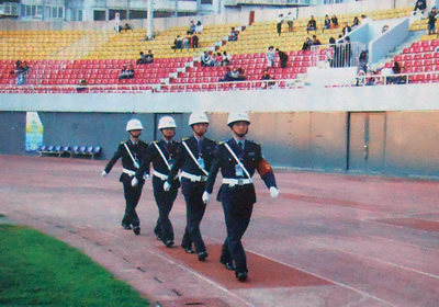 軍事化的管理 統(tǒng)一的服裝、警械配備;嚴格的警衛(wèi)制度、規(guī)范的軍事訓練、統(tǒng)一的內(nèi)勤管理;嚴謹?shù)难矋彶閸彵O(jiān)督制度、規(guī)范的獎懲考核制度。形成隊伍六規(guī)范:軍事訓練規(guī)范、內(nèi)務衛(wèi)生規(guī)范、執(zhí)勤上崗規(guī)范、儀容儀表規(guī)范、文明用語規(guī)范、熱情服務規(guī)范。